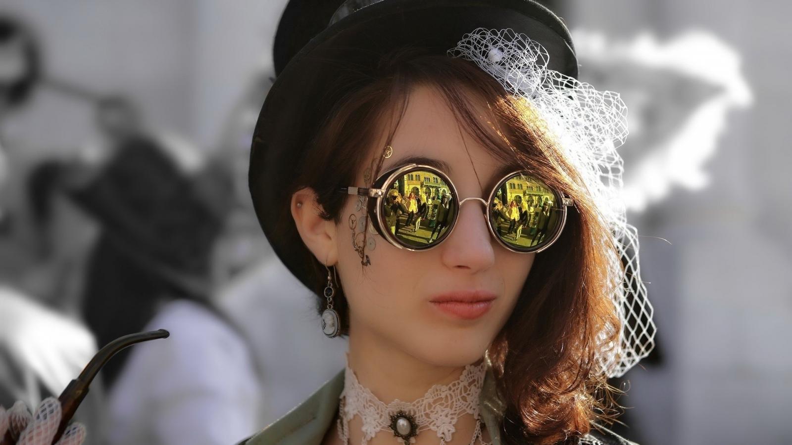 Обои Девушка в шляпке и очках в стиле стимпанк