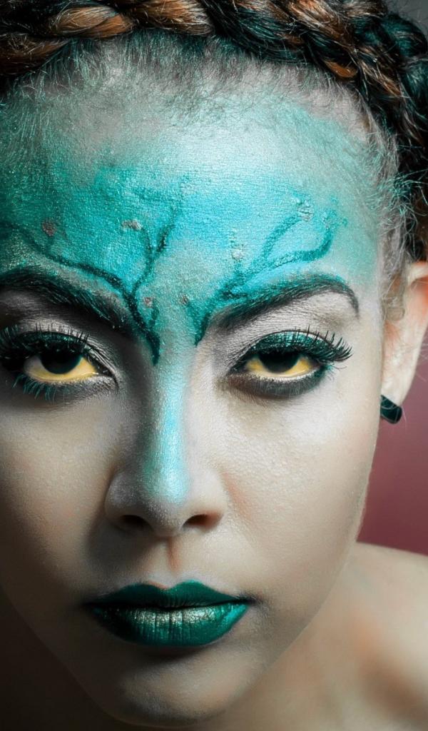 Обои Зеленая краска на лице у девушки