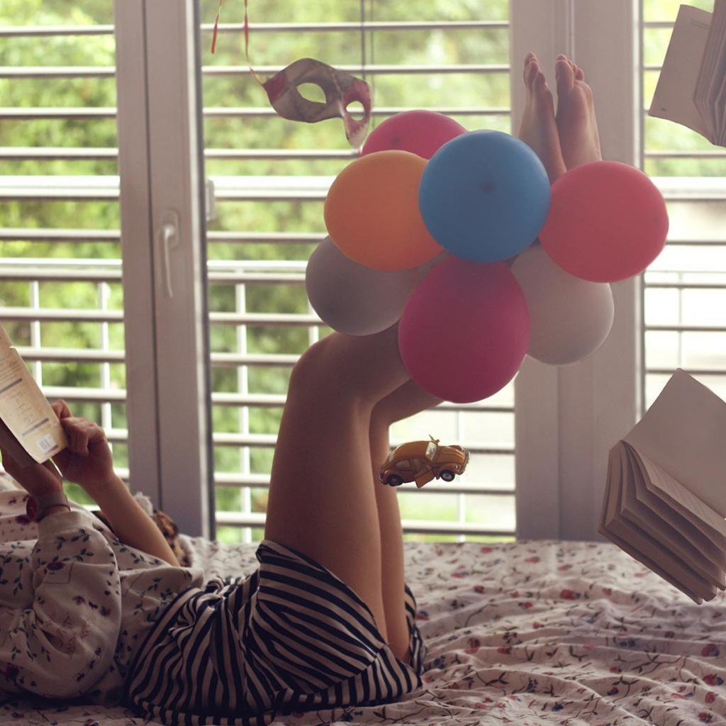 Обои Девушка читает книгу среди хаоса
