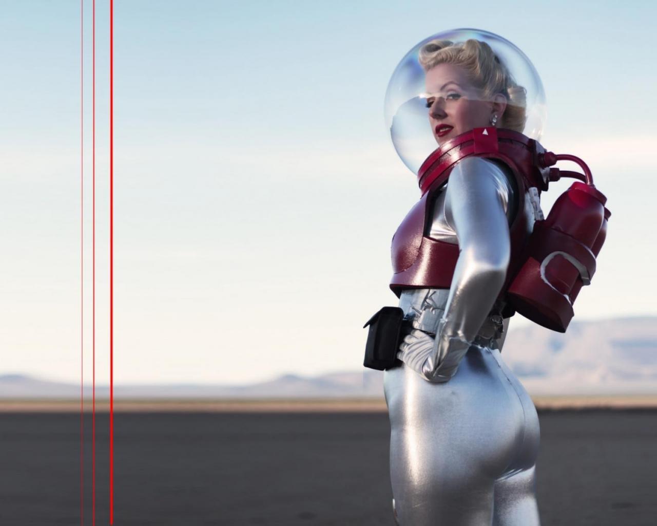 Обои Блондинка в ретро скафандре