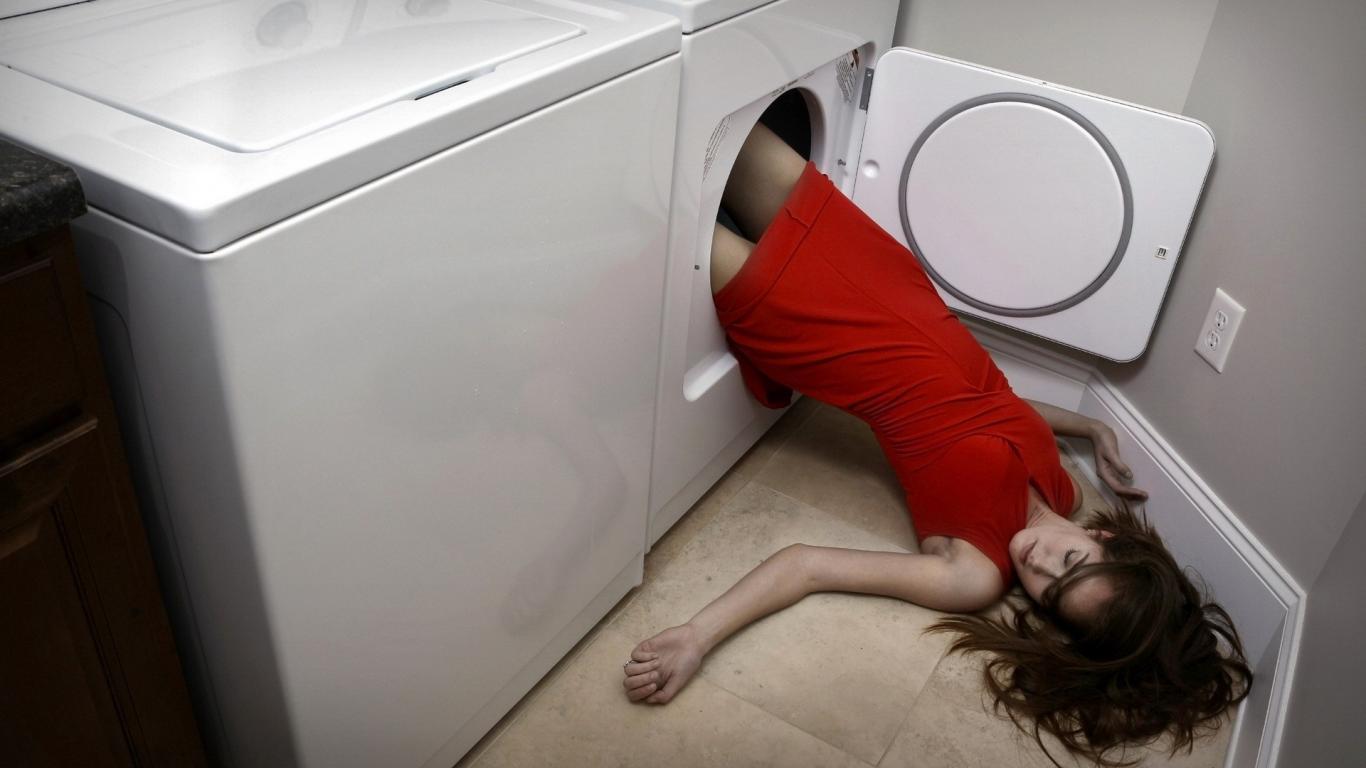 Обои Девушка в стиральной машине