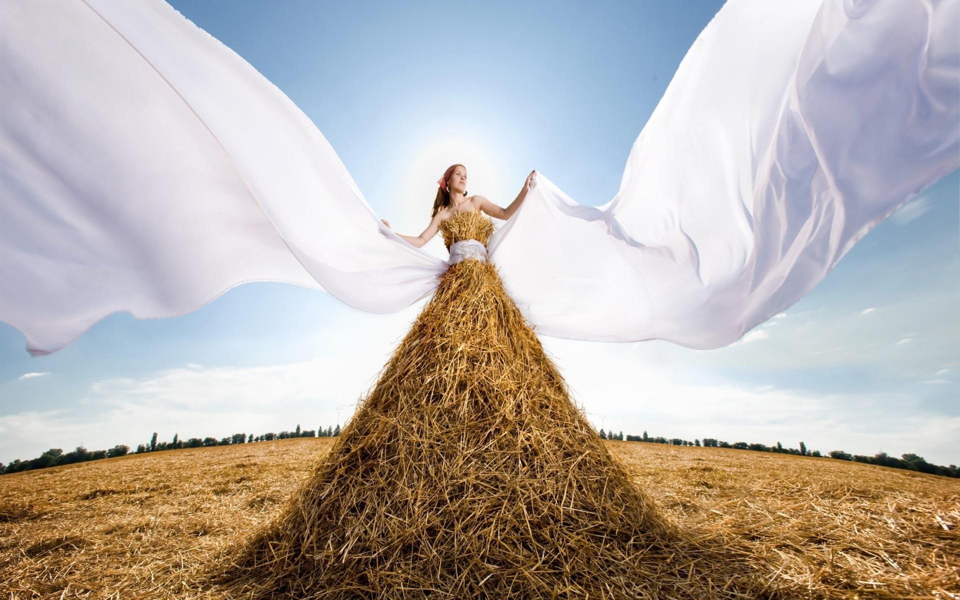 Обои Девушка в платье из сена