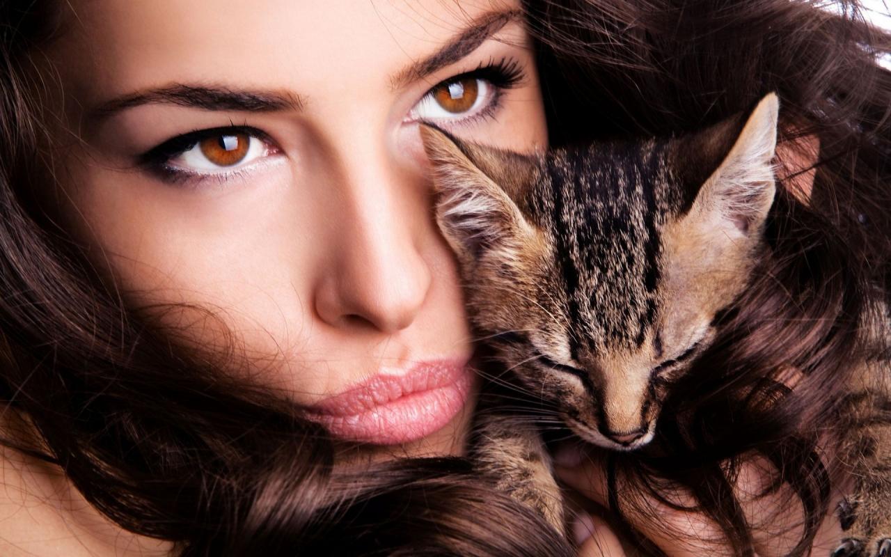 Обои Модель Мелисса Рисо обнимает котенка