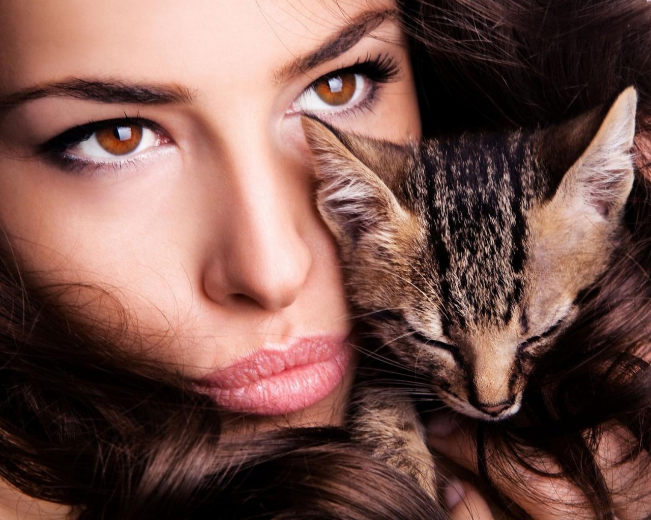 Обои Модель Мелисса Рисо обнимает котенка