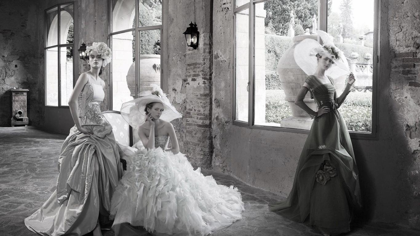 Обои Девушки в ретро одеждах в старом доме