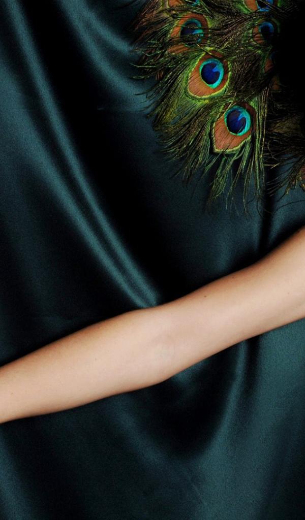 Обои Девушка на перьях павлина