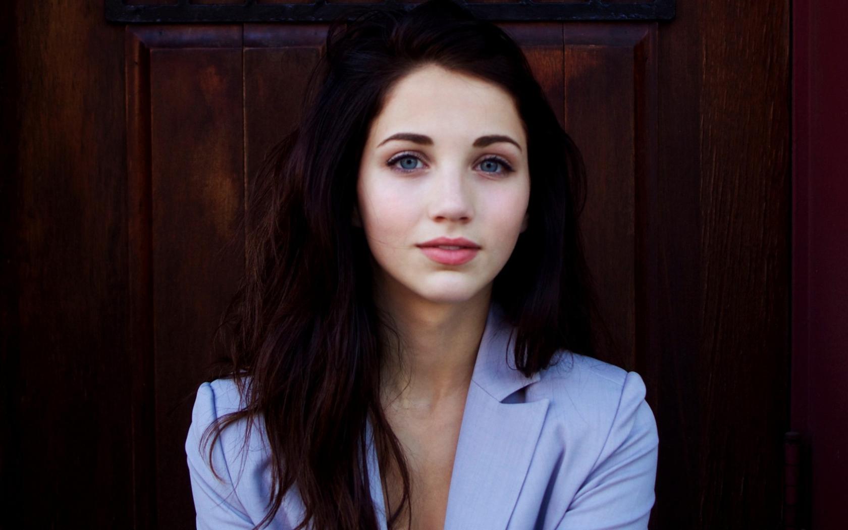 Обои Брюнетка у коричневой двери