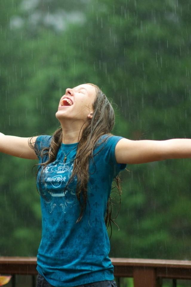 Обои Девушка радуется летнему дождю