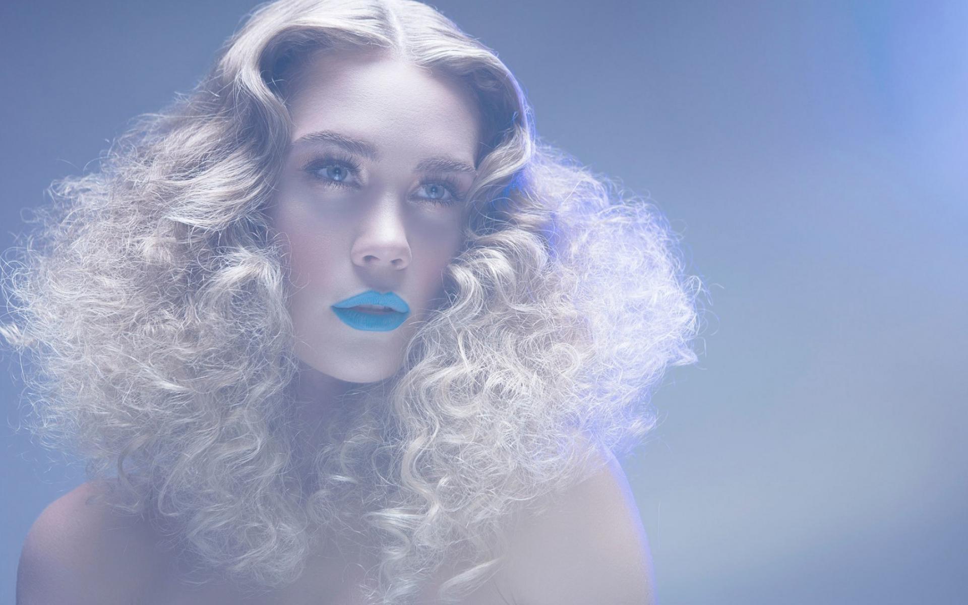 Обои Модель блондинка с голубыми губами