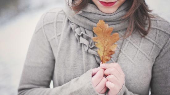 Обои Девушка держит в руках желтый лист