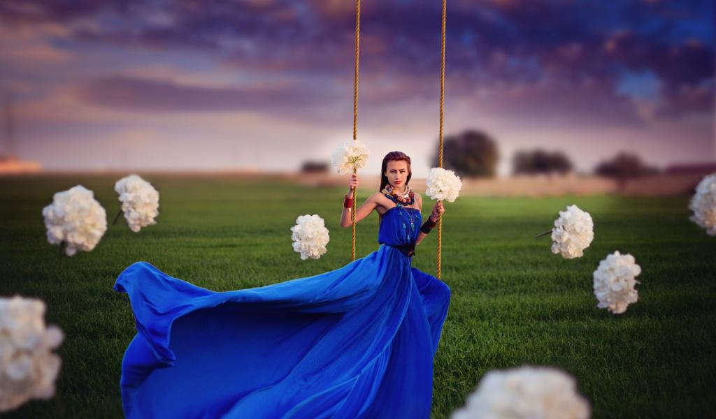 Обои Девушка среди облаков
