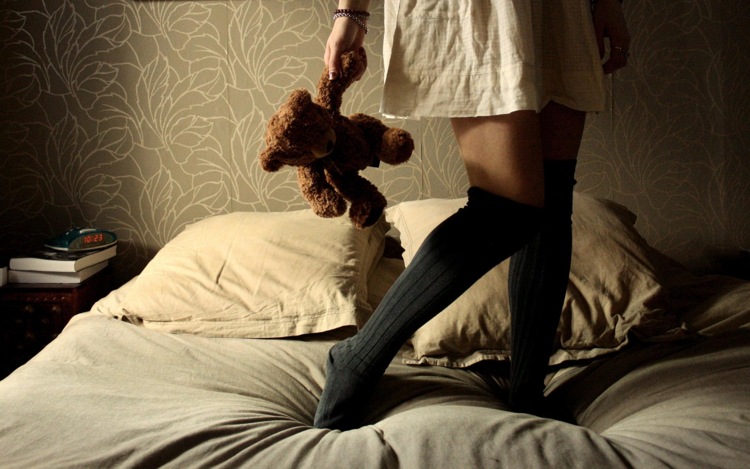 Обои Девушка с плюшевым медведем