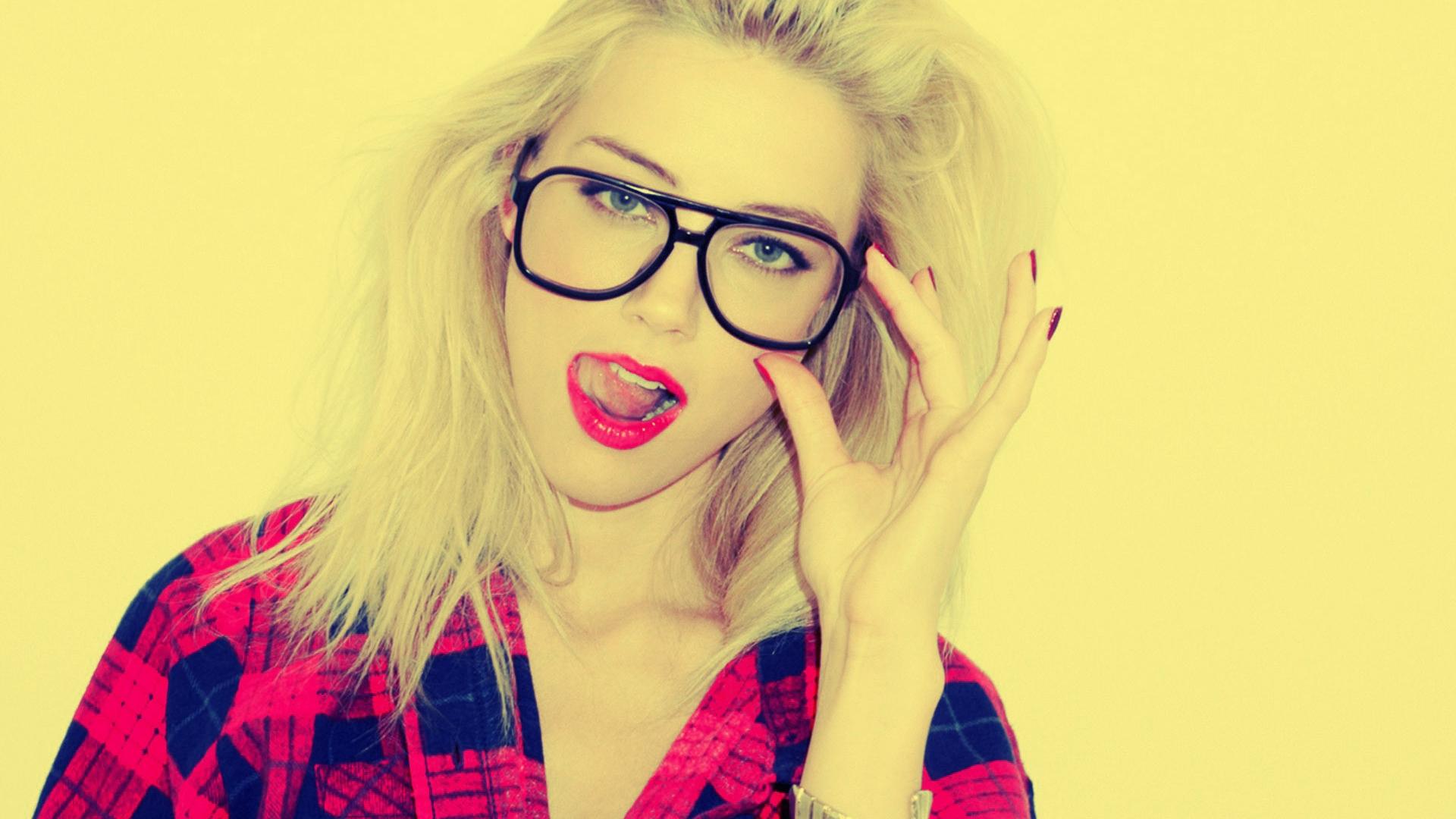 Обои Блондинка в клетчатой рубашке