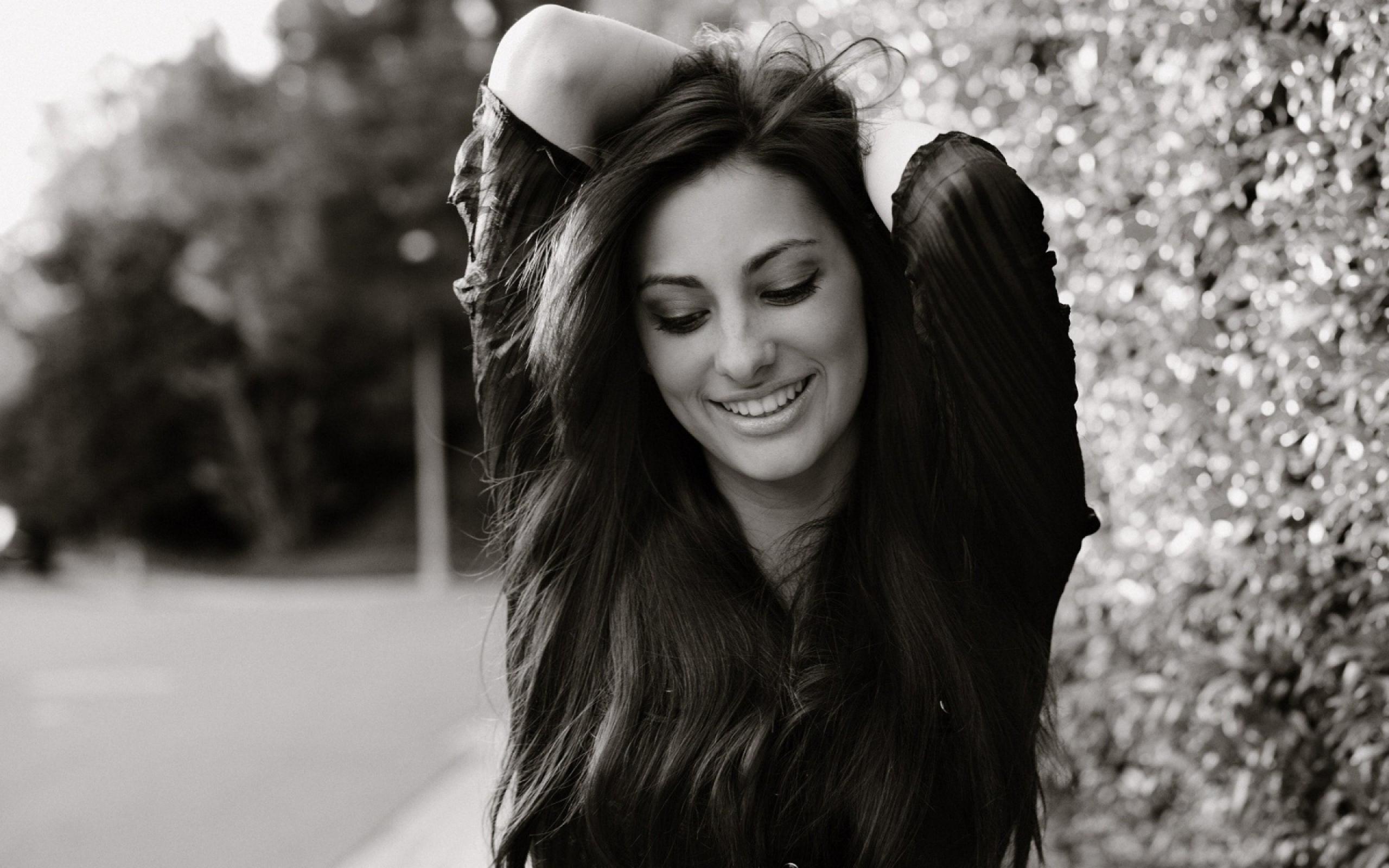 Обои Улыбка, Длинные волосы, монохром