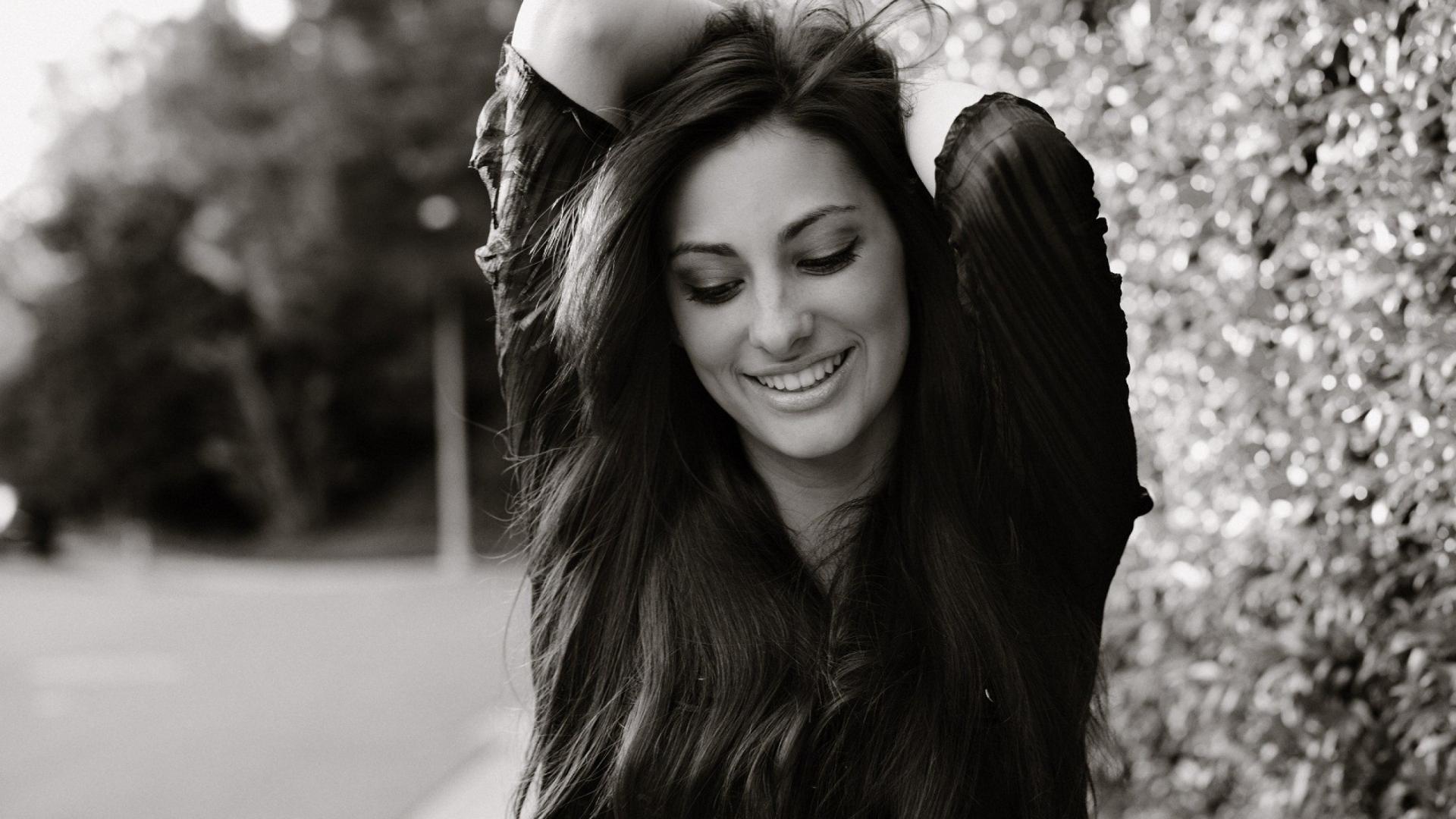 Обои Улыбка, Длинные волосы, монохром