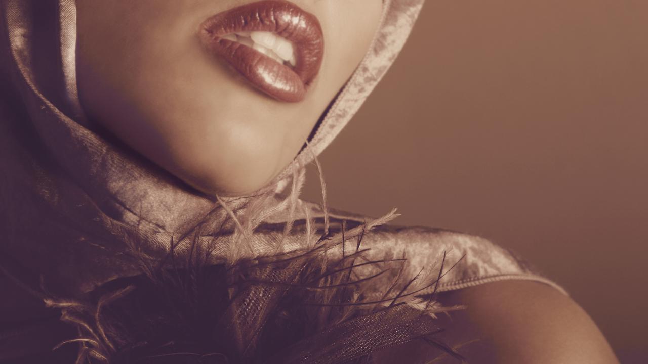 Обои Красные губы, Ротик, Ретро, платок