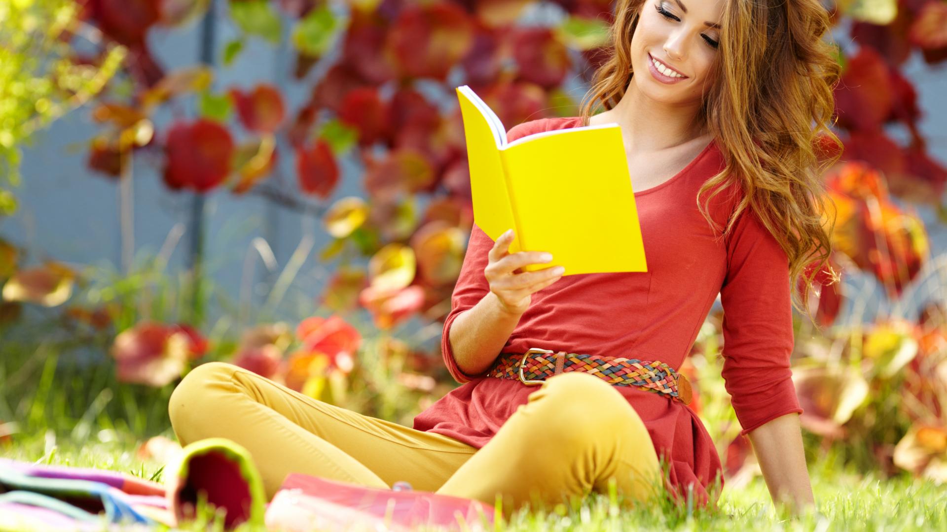 Обои Улыбка, Книга, Длинные волосы
