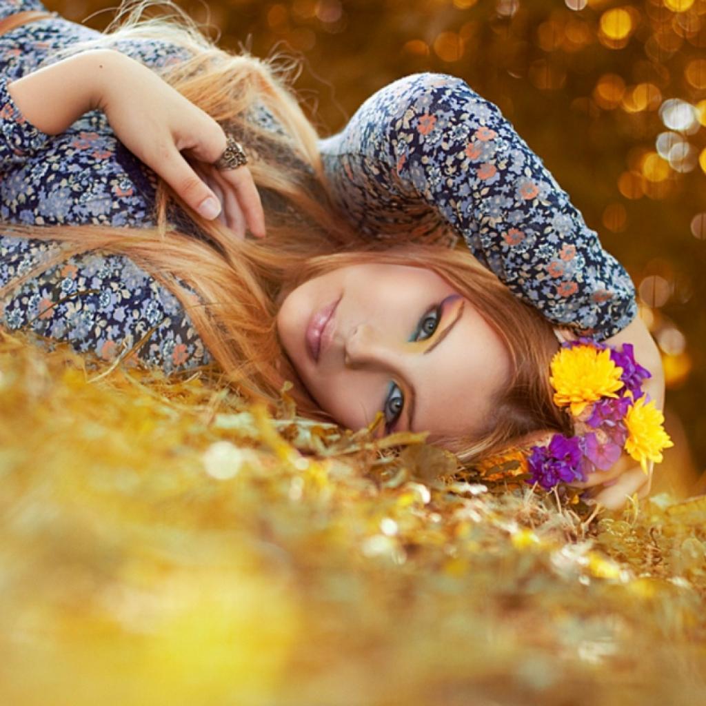 Обои Взгляд, Трава, лежит