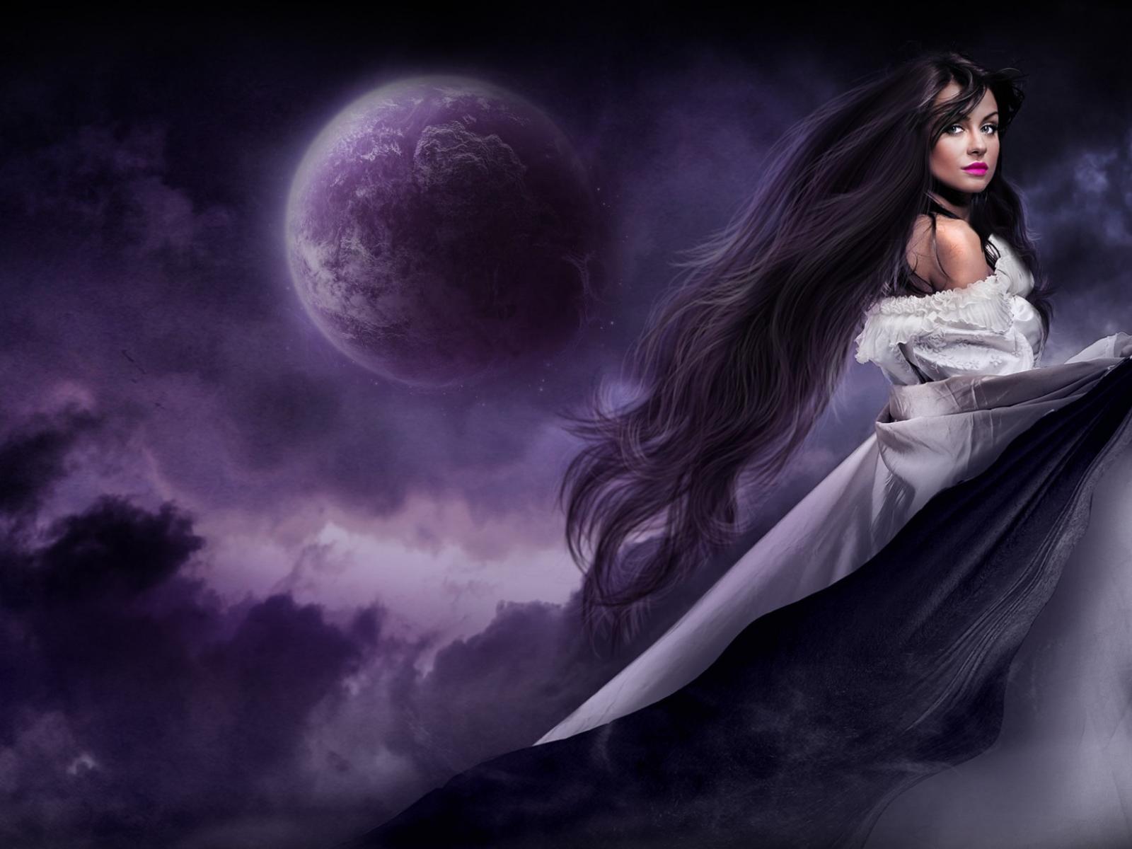 Обои Длинные волосы, Луна, платье
