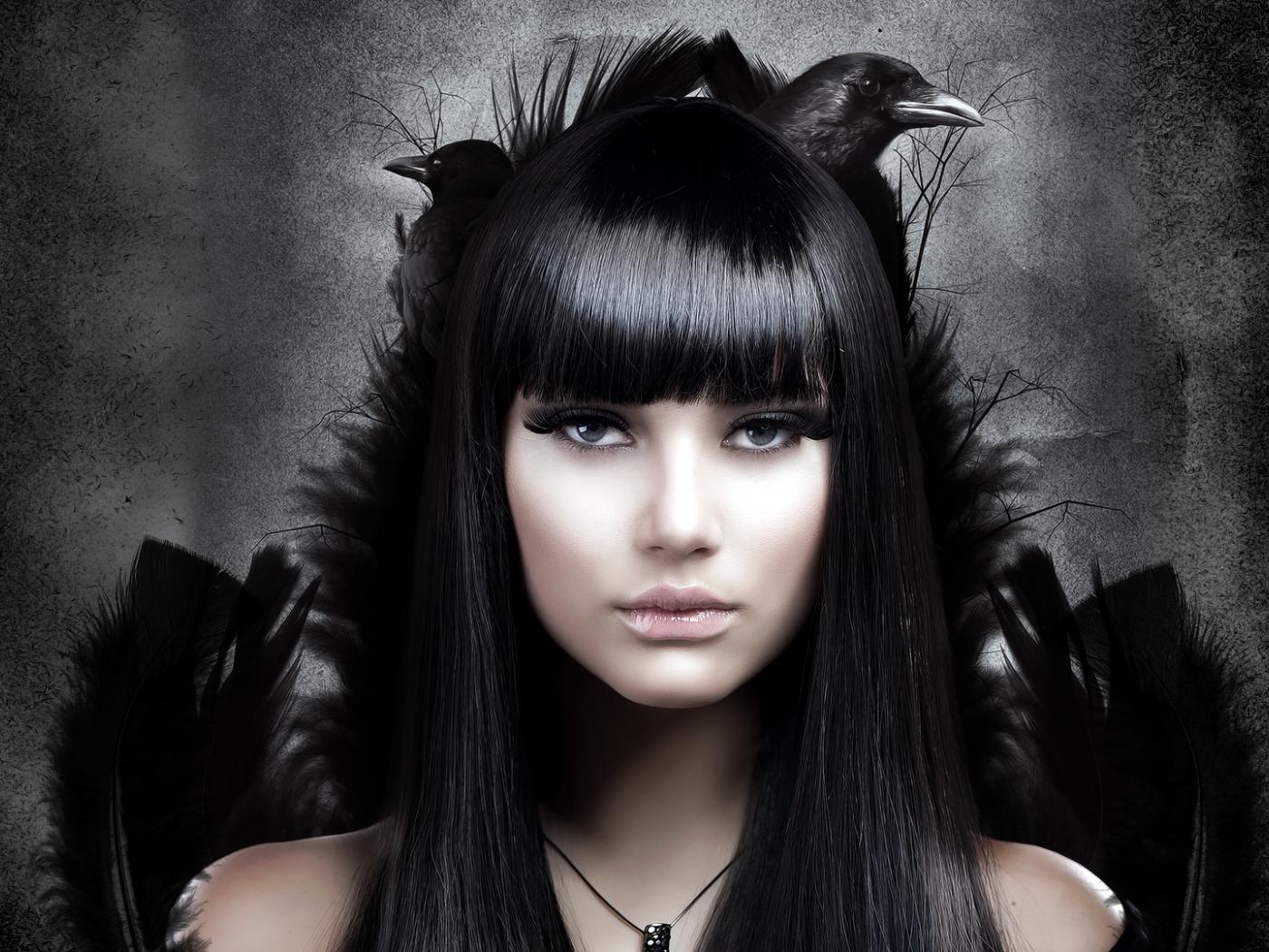Обои Кулон, Длинные волосы, перо, ворона