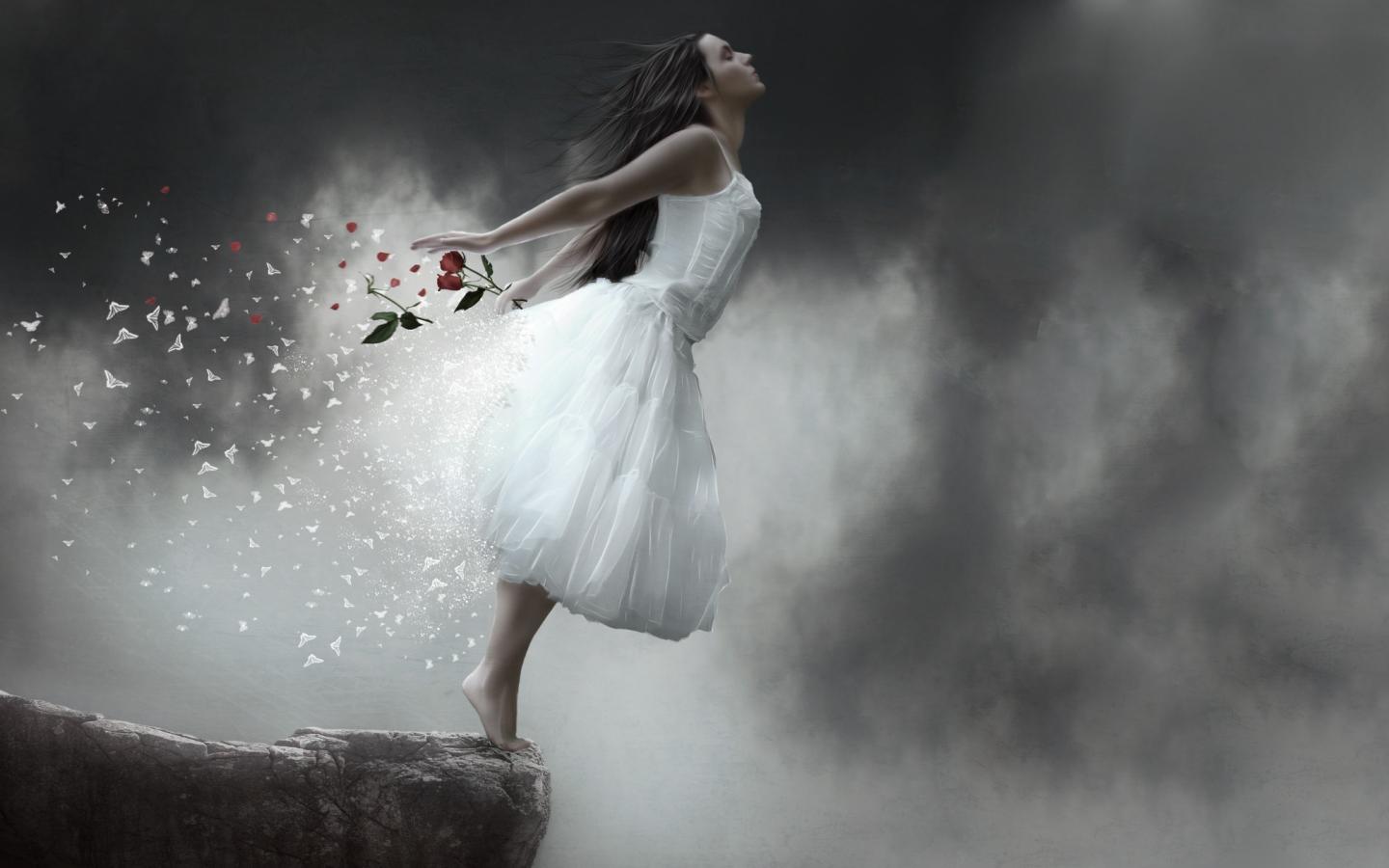 Обои лепестки, монохром