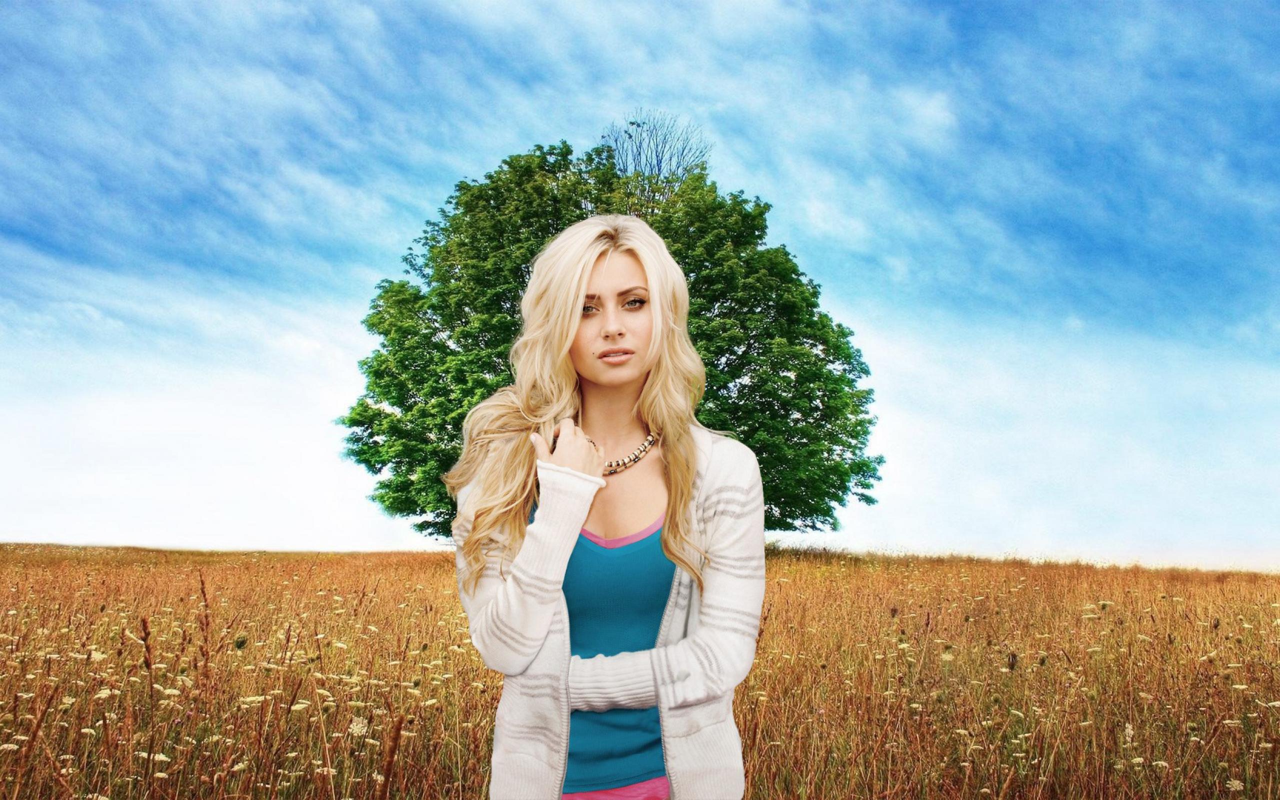 Обои Небо, Деревья, Длинные волосы, Гламурные