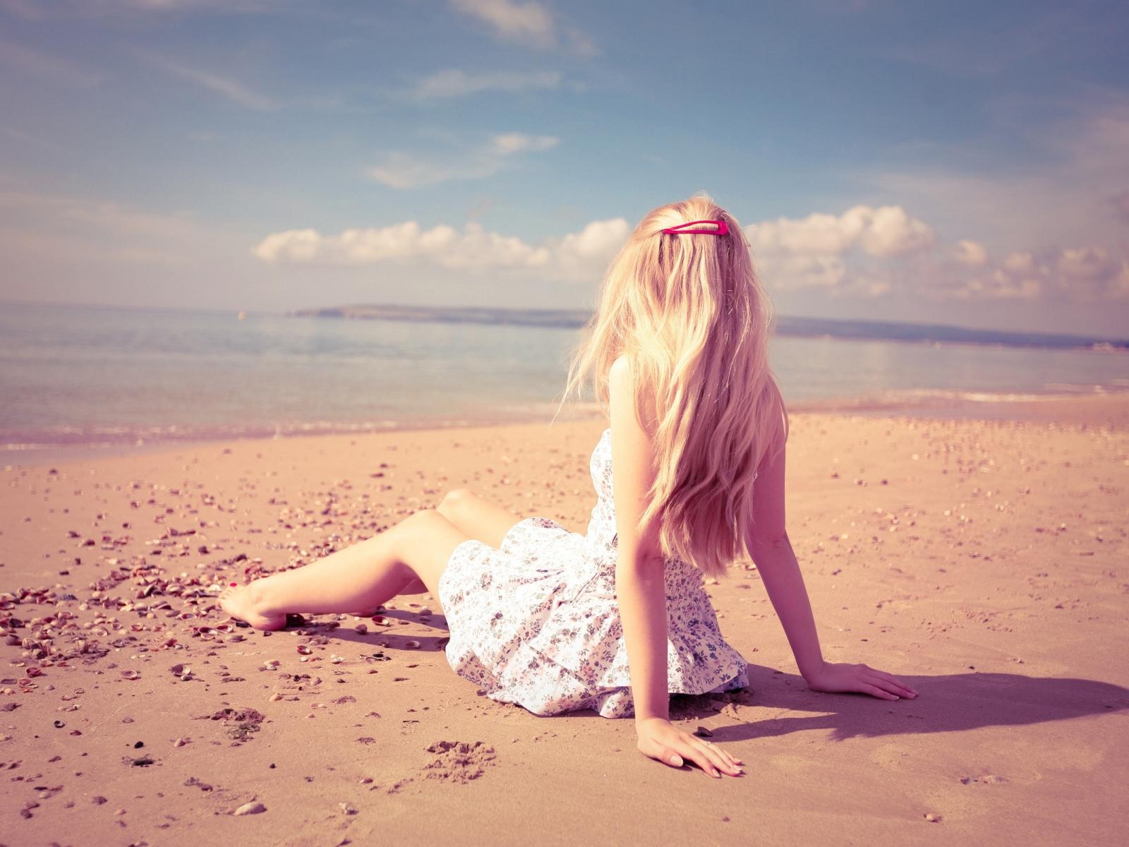 Обои Блондинка на берегу моря