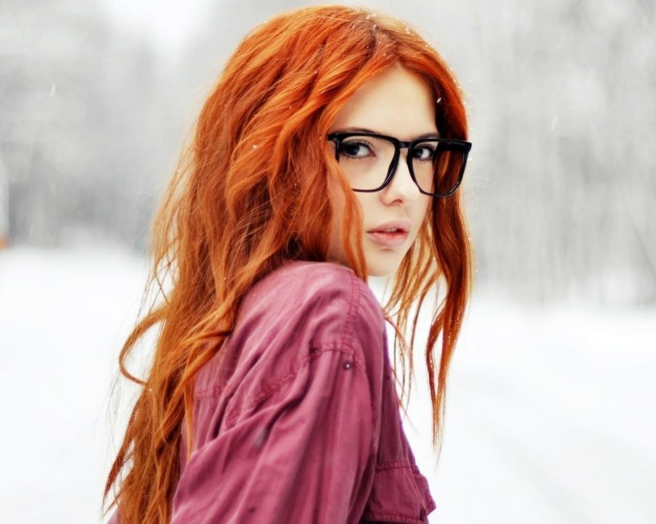 Обои Рыжая девушка в очках