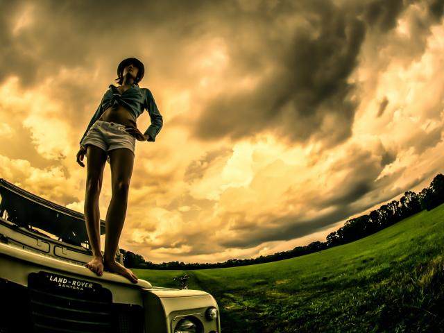Обои Девушка на капоте