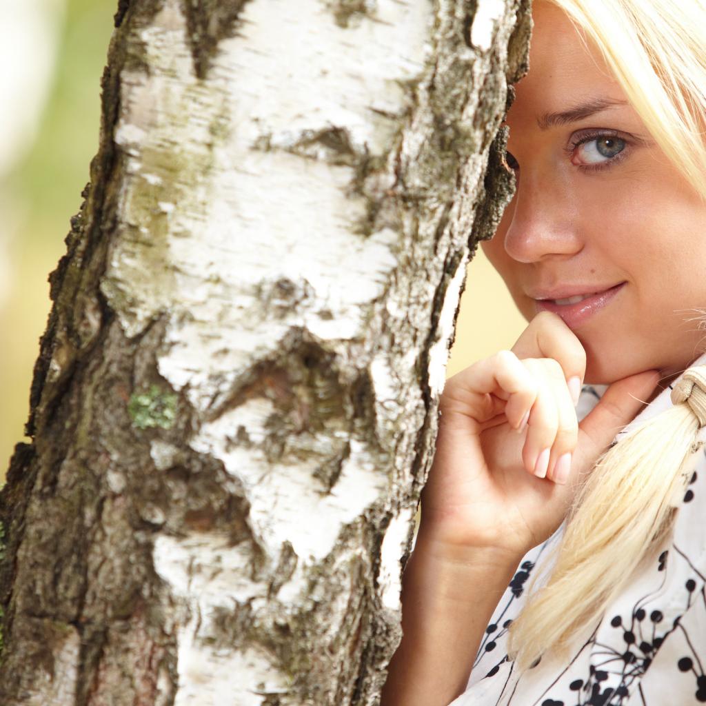 Обои Девушка и береза