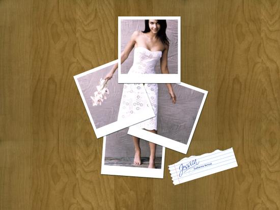 Обои Джессика Альба (Jessika Alba) у столика с цветами