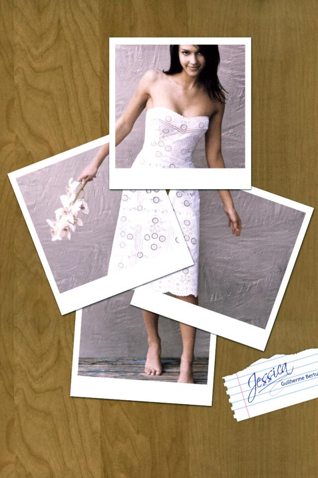 Обои Джессика Альба (Jessika Alba) у столика с цветами