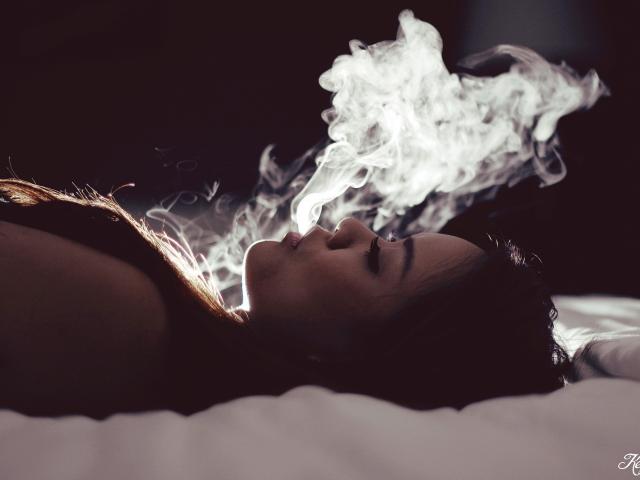 » Обои Девушка выпускает дым изо рта