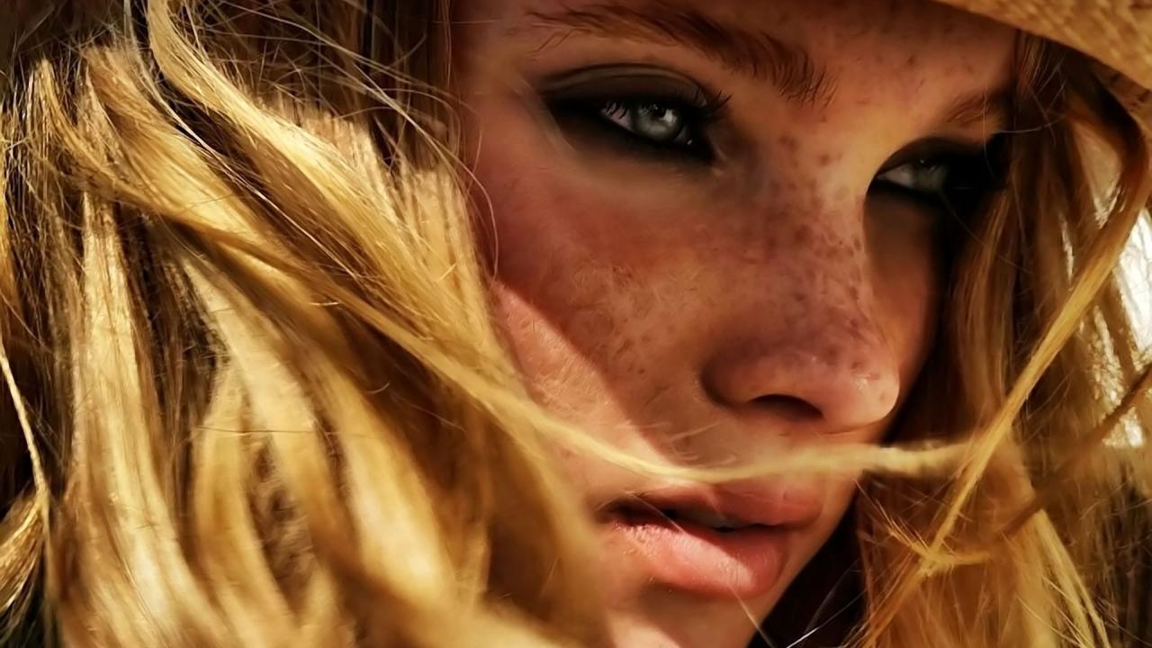 Обои Веснушки у девушки в соломенной шляпе