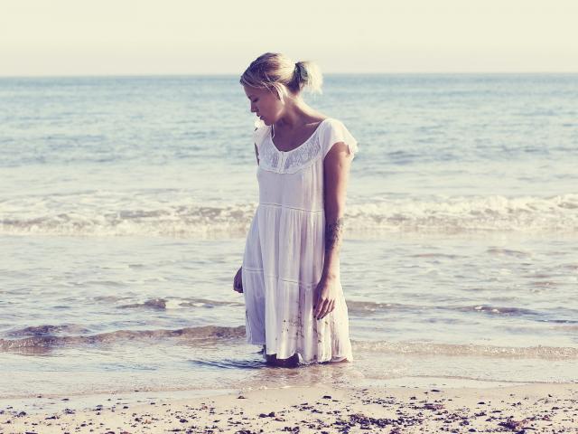 Обои Девушка в белом платье стоит в воде