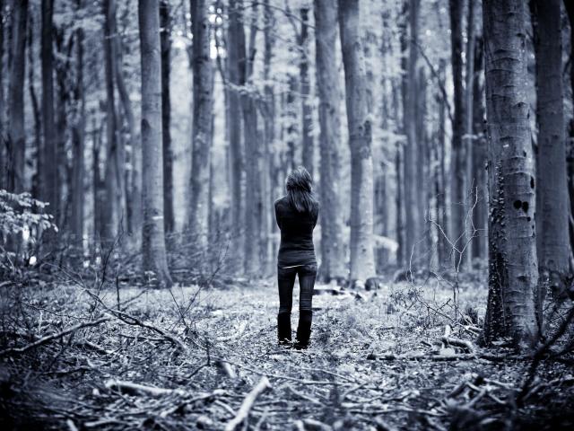 Обои Одинокая девушка в лесу
