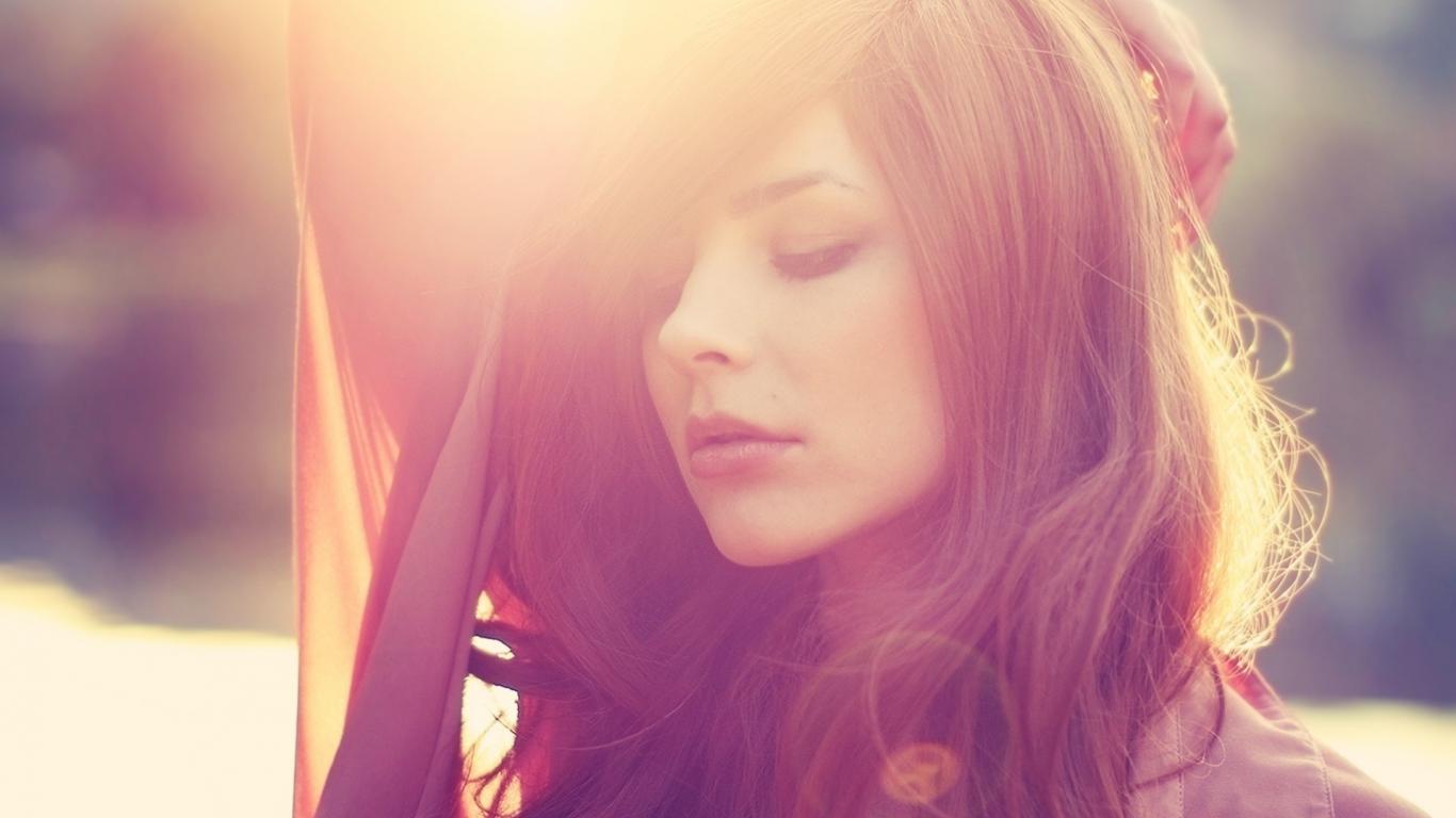 Обои Девушка с каштановыми волосами в лучах солнца