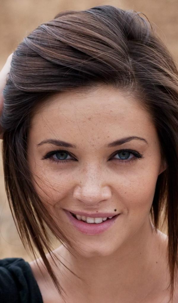 Обои Брюнетка с веснушками