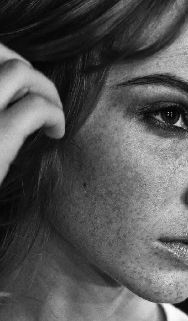Обои Задумчивая девушка с веснушками