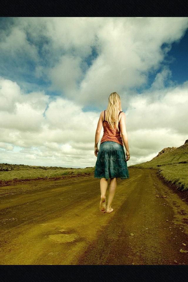 Обои Босая девушка на дороге