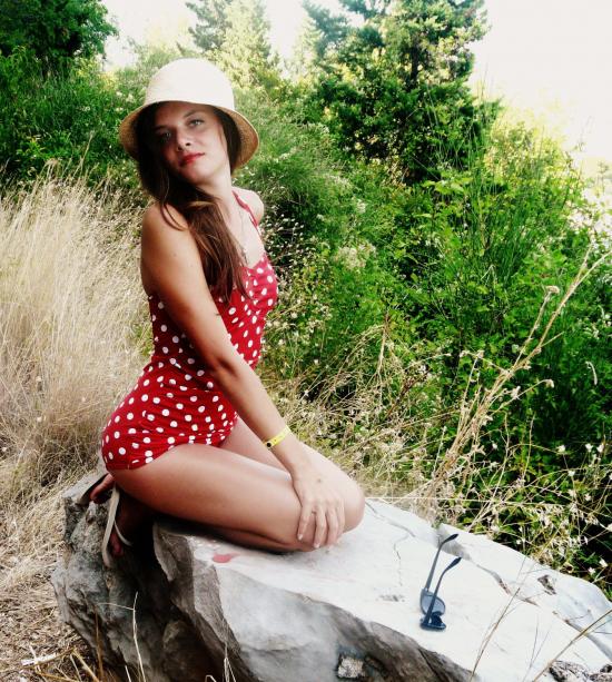 Обои Девушка в купальнике в горошек