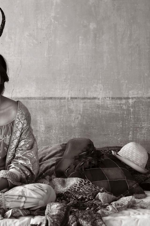Обои Девушка на кровати, ретро