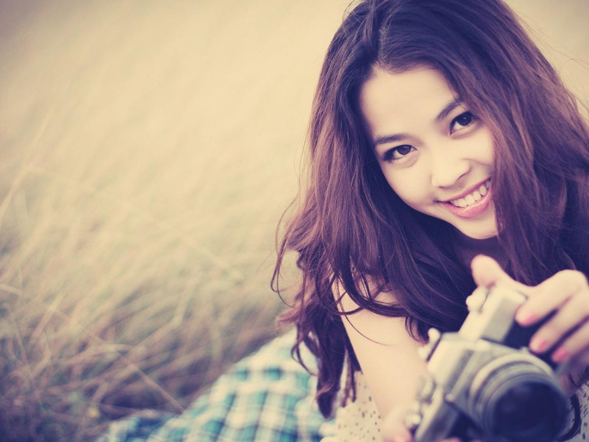 Обои Девушка с фотоаппаратом