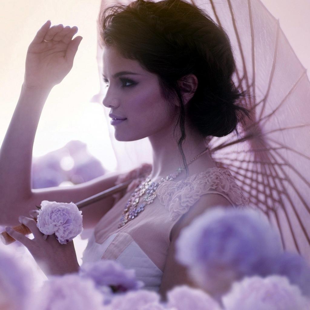 Обои Селена Гомез с зонтиком