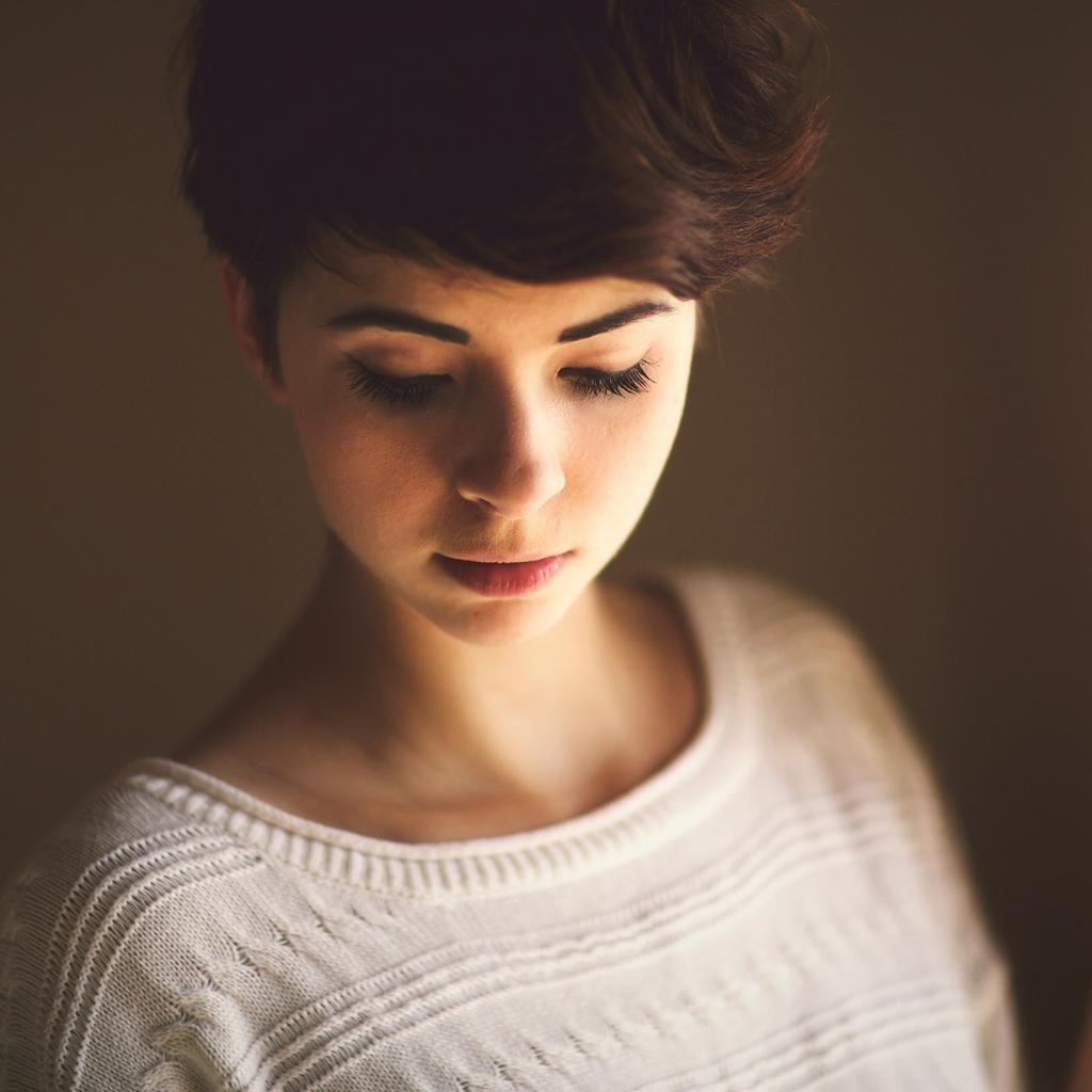 Обои Брюнетка смотрит вниз