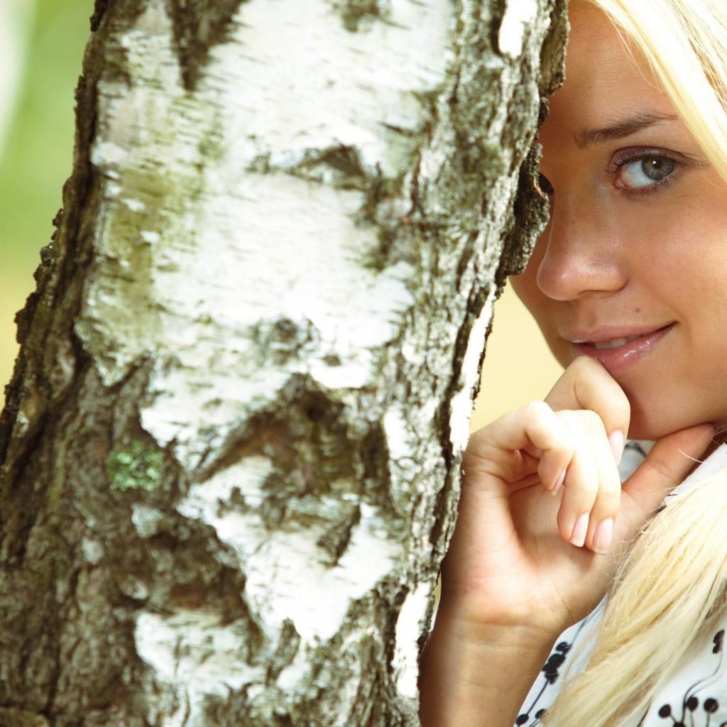 Обои Блондинка у березы