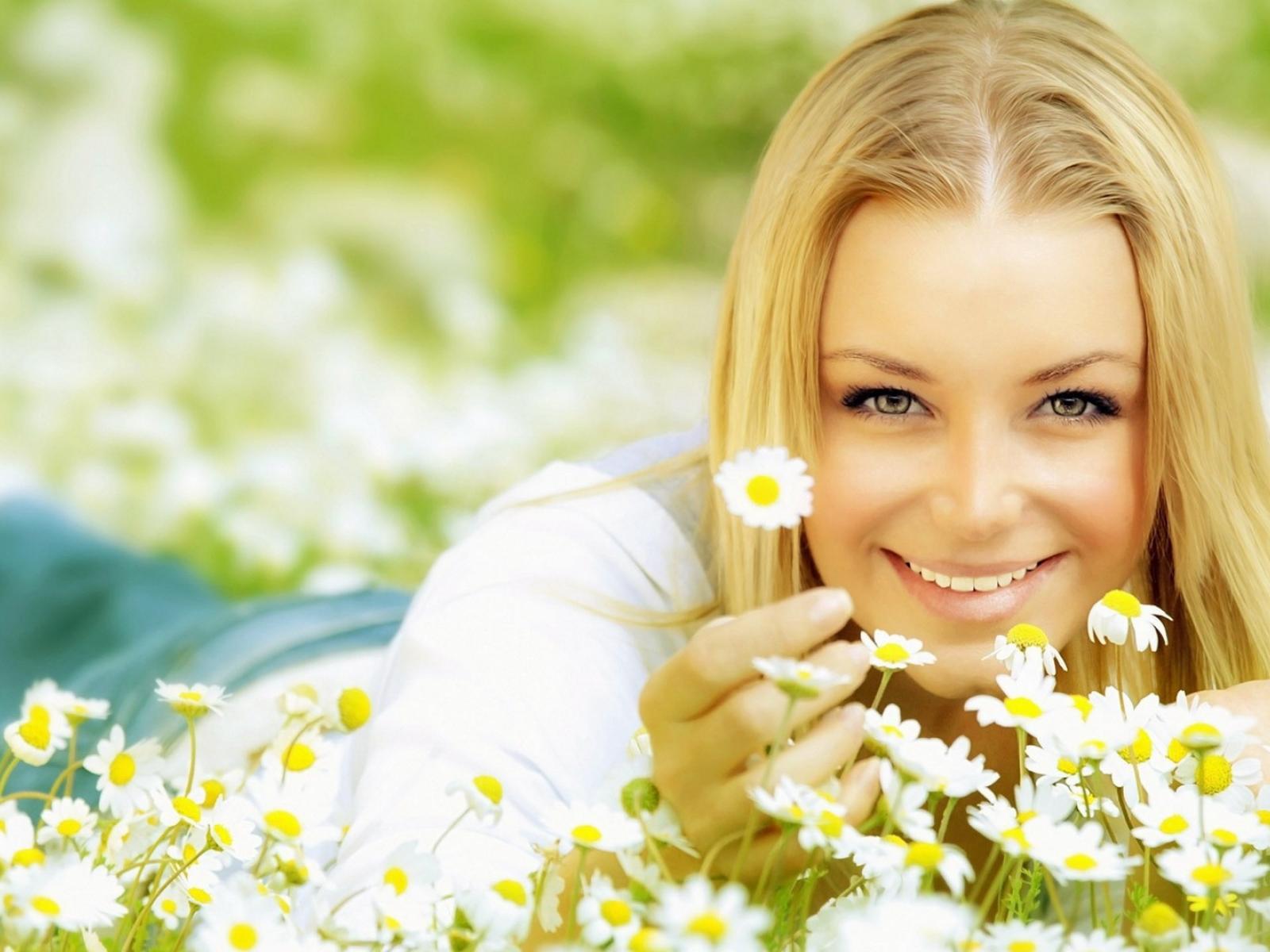 Обои Блондинка с ромашками