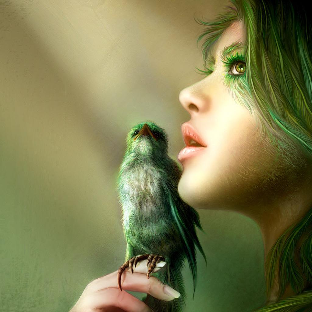 Обои Девушка с птицей