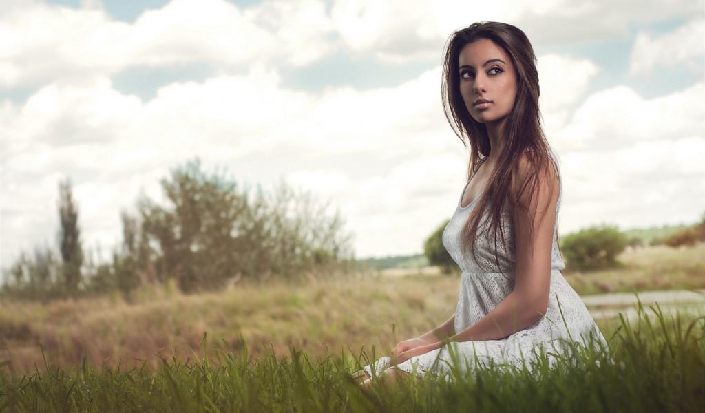 Обои Брюнетка на природе