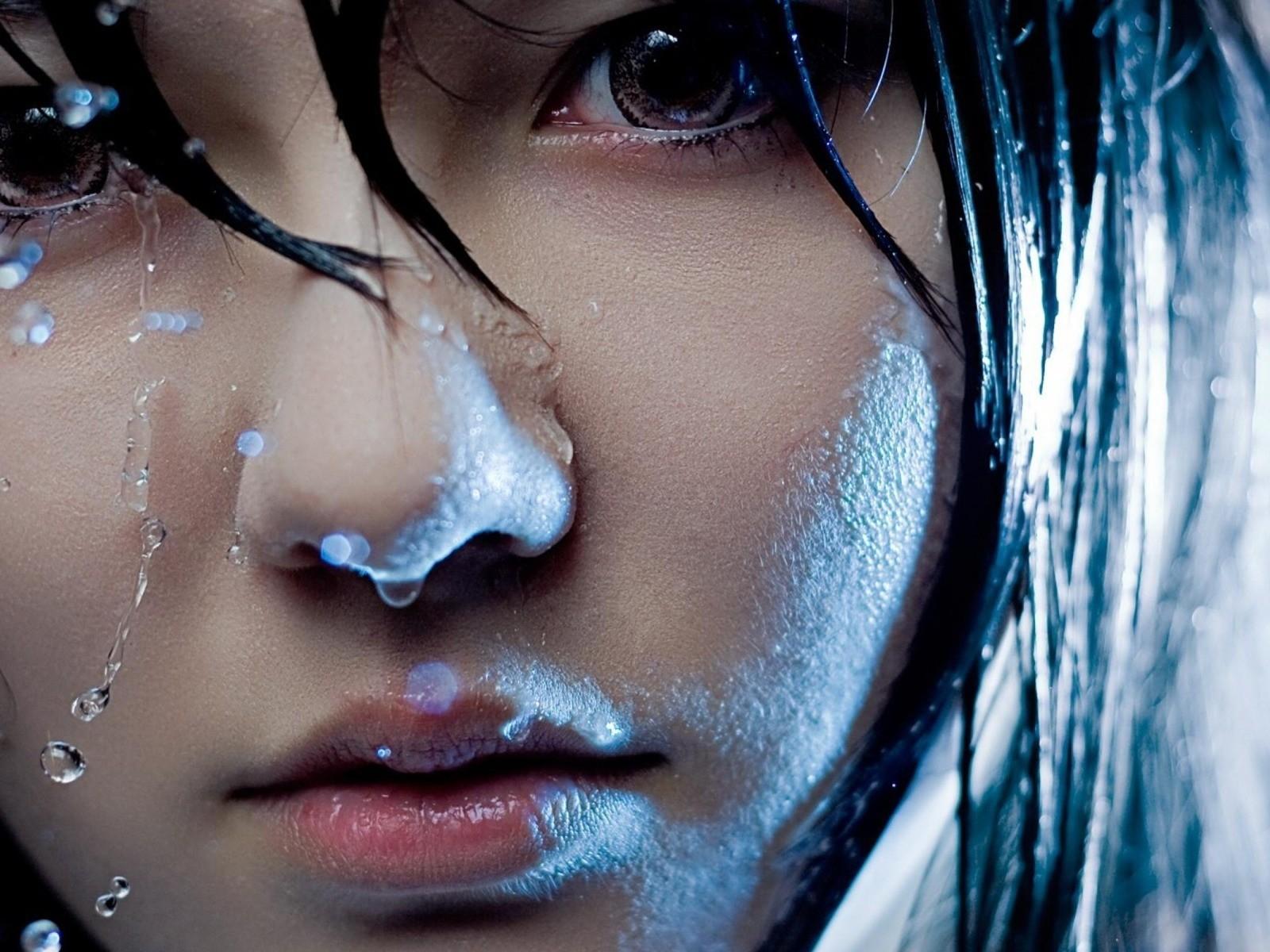 Обои Лицо с каплями дождя